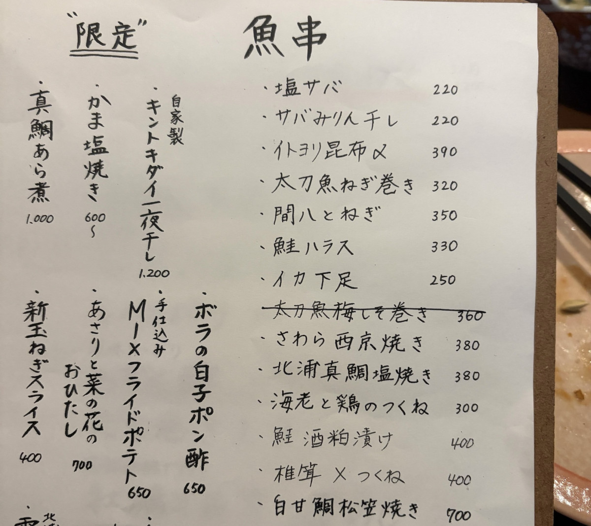一部メニュー表