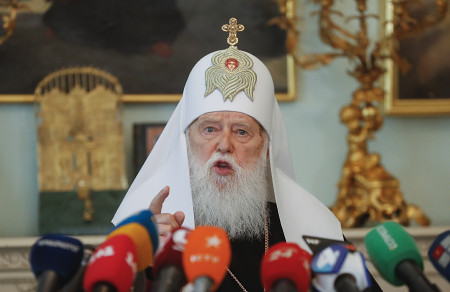 フィラレート氏(ウクライナ正教会名誉総主教)現地メディアによると、20日に死去、97歳。持病の悪化が死因という。今月上旬、首都キーウの病院に入院していた=2019年5月撮影、キーウ 【EPA時事】