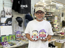 古川さんはデザイナーとしても活動。同町のマスコット「大使くん」にGADOROさんのステージ衣装を着せたグッズなども制作。「壁画の前で待ち合わせをする人もいるなど、町のシンボルになりつつある。これからも町を挙げて応援していきたい」と話す。