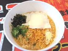 自動販売機で商品を選び、購入した食券をスタッフに渡した後、セルフのマシンで調理する流れ。ラーメンは1杯500円で、持ち帰りの商品購入は1個350円。韓国直輸入で、国内で流通しているものとは異なるという「辛ラーメンノーマル」、麺、スープにゴマが練り込んである「チャムケラーメン」、「スパゲッティラーメン」、焼きそばの「辛ラーメントゥーンバ」など15種を用意する。「キンパ」(300円)や、リゾットにできる「ごはん」(200円)、チーズ・卵などのトッピング(100円~)も用意する。