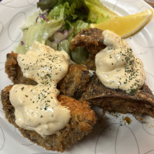 ほか、「肉厚椎茸(わら)南蛮とカツのハーフ&ハーフ」(1,100円)、「鶏刺し身の盛り合わせ(レバー、はつ、砂ずり、ささ身、羽身)」(1,600円)、「鶏レバーと砂ずりのパルミジャーノパスタ」(1,480円)、「アボカドと手作りリコッタチーズ」(600円)、「自家製タレのもつ焼き」(800円)などをそろえる。「杜季特選コース」(6,500円)も準備する。