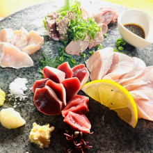 刺し身は、津本式究極の血抜きを施した熟成魚を中心に「魚刺し身盛り合わせ(1人前)」(1,480円)、「本まぐろ赤身刺し身」(1,000円)などを提供。炭やわらを使った炙(あぶ)り刺し身のほか、自家製の煮切りしょう油や黄身ポン酢など、「提供にも工夫を凝らしている」という。