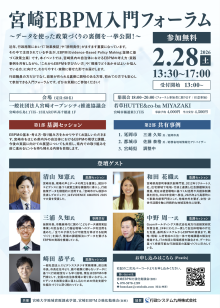 証拠に基づく政策立案「EBPM(Evidence-Based Policy Making)」をテーマにした入門フォーラムが2月28日、一般社団法人「宮崎オープンシティ推進協議会(MOC)」(宮崎市広島1)で開催される。主催は一般社団法人「宮崎オープンシティ推進協議会」。