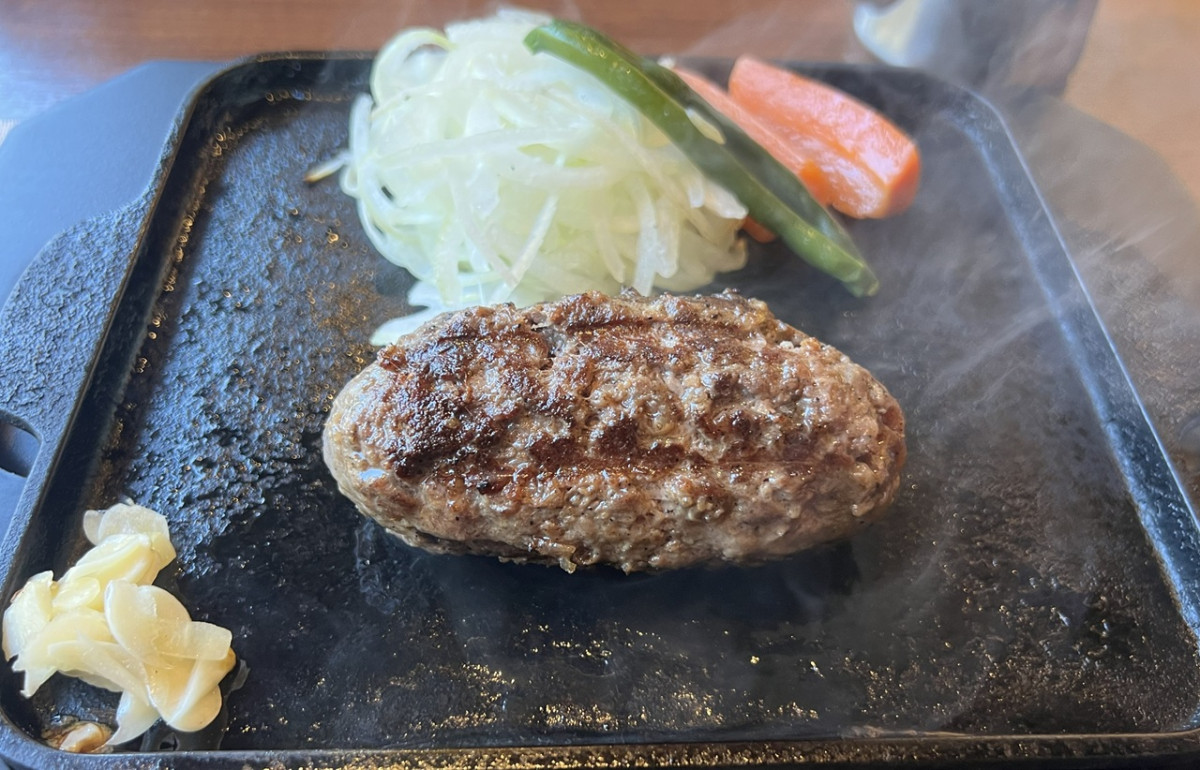 1階ロビー横にある「霜降りハンバーグと宮崎牛ステーキ 平家の郷」の「炭焼き霜降りハンバーグ」