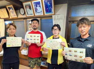 西都市の穂北地区の店舗や見どころをイラストで紹介する「穂北まち巡りガイドマップ」が完成し、現在、市内各所で配布されている。