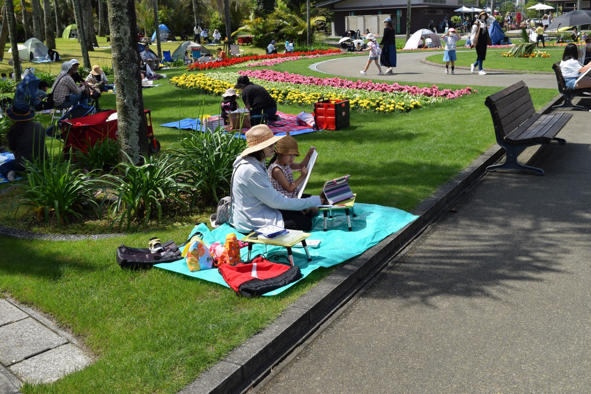 親子でスケッチ大会を楽しむ、過去の大会の模様(写真提供=テレビ宮崎)