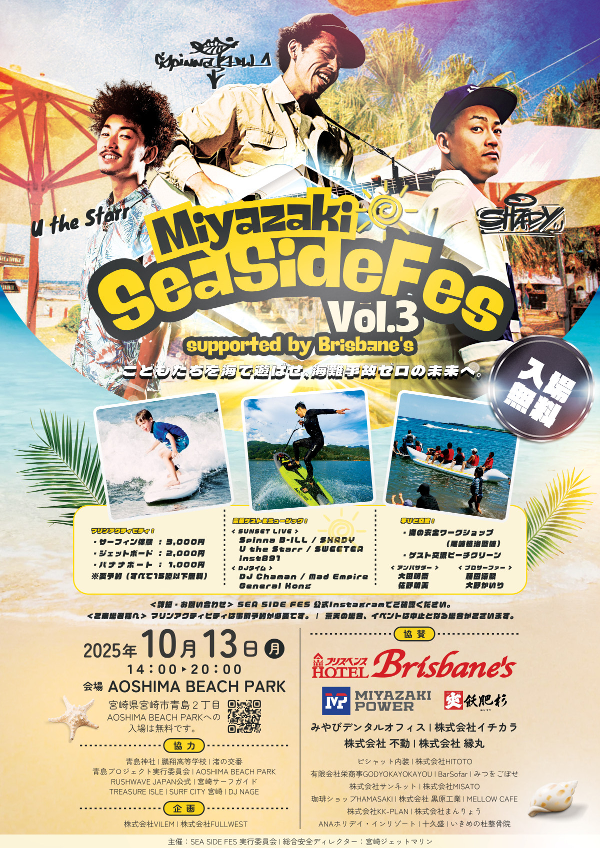 「Miyazaki Sea Side Fes(宮崎シーサイドフェス)」が10月13日、「AOSHIMA BEACH PARK(青島ビーチパーク)」(宮崎市青島2)で開催される。