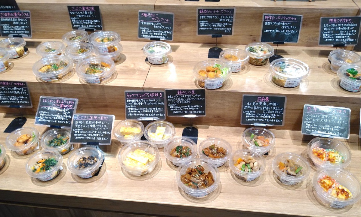 普段から栄養士の鵜戸さん考案の低塩分や、低カロリーの総菜が並ぶ「なないろコーナー」の様子
