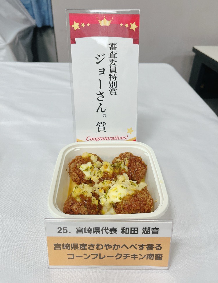 宮崎の調理製菓専門学校「マナビヤ宮崎アカデミー」(宮崎市大塚町地蔵田)パティシエ科の和田湖音さんが1月10日、食肉総菜創作発表会「ミートデリカコンテスト」で審査委員特別賞を受賞した。