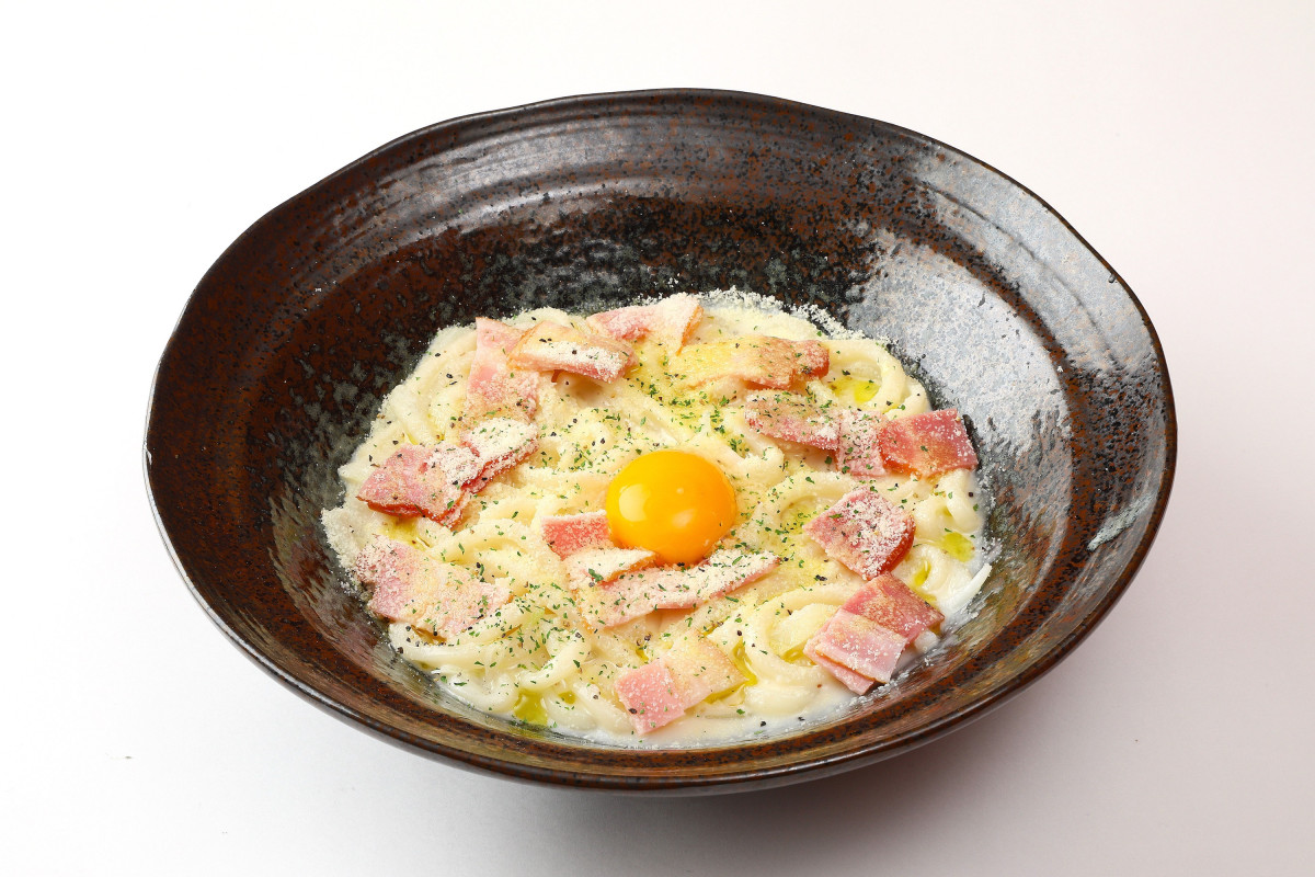 同店で一番人気の「クリーミーカルボナーラうどん」(1,180円)(写真提供=「うどん伊呂波 宮崎」)