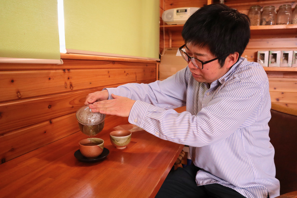 山下さんがお茶を淹(い)れている様子