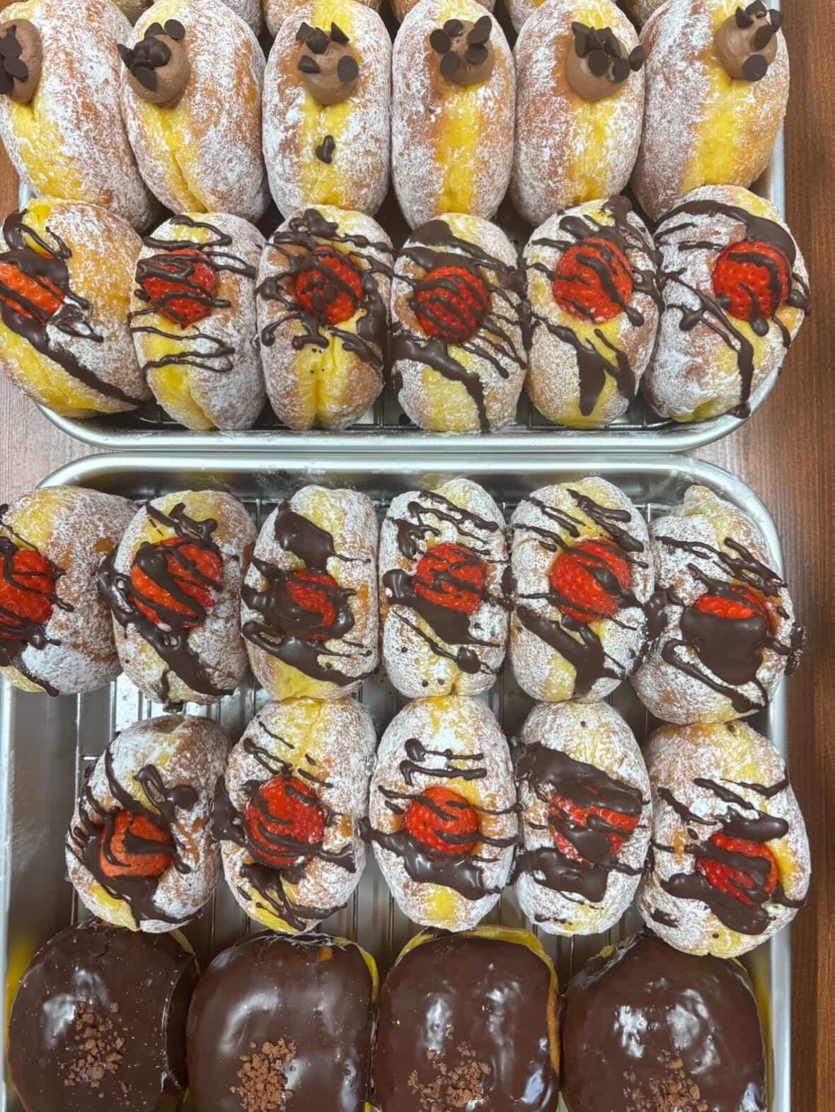 (上から)チョコレート、いちご、ダブルチョコ(写真提供=ONE DONUTS)