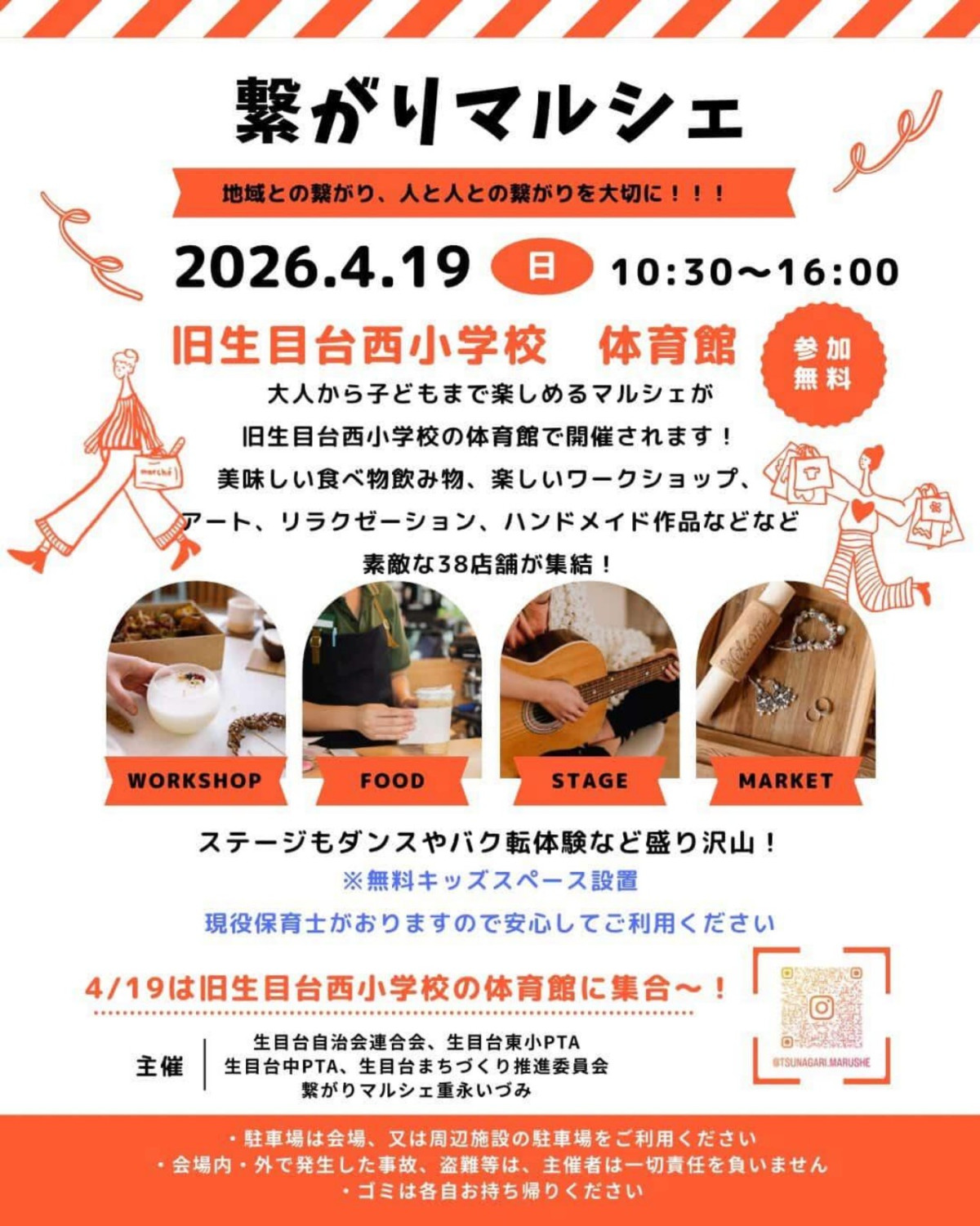 「繋(つな)がりマルシェ」が4月19日、昨年廃校となった「旧生目台西小学校」(宮崎市生目台西2)の体育館で開催される。