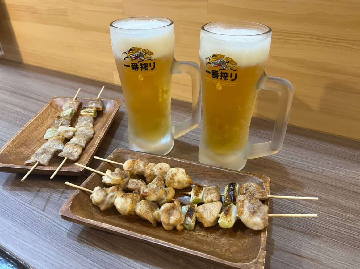 ちょい呑み営業で提供する焼き鳥とビール(写真提供=きなこ番長)
