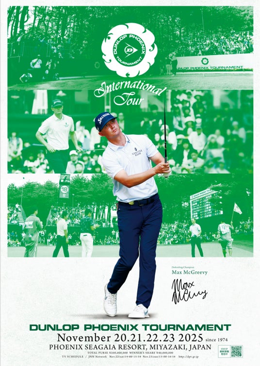今回で52回目を数える「ダンロップフェニックストーナメント」には、2014年大会の優勝者で2021年のマスターズチャンピオン、パリオリンピック銅メダリストの松山英樹選手が出場します。ほかにも海外招待選手として、24年1月に米国PGAで33年ぶりとなるアマチュア優勝を飾った21歳のニック・ダンラップ選手、米国の下部ツアーで2勝を挙げポイントランキング4位となり来季の米国PGAツアーに昇格するニール・シプリー選手ら5名が参戦します。