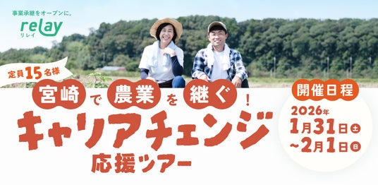 オープンネーム事業承継「relay(リレイ)」を運営する株式会社ライトライト(宮崎県宮崎市 / 代表取締役:齋藤 隆太 / 以下、ライトライト)は、宮崎市内の農林水産業者の後継者募集に特化した特設ページ「relay the local 宮崎市」の共同運営を行っている宮崎県宮崎市と、2025年1月31日(土)、2月1日(日)に「宮崎で農業を継ぐ!キャリアチェンジ応援ツアー」を開催することをお知らせいたします。