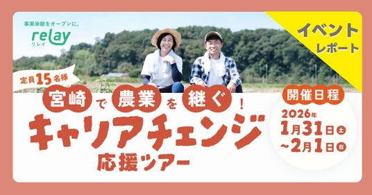 オープンネーム事業承継「relay(リレイ)」を運営する株式会社ライトライト(宮崎県宮崎市 / 代表取締役:齋藤 隆太)は、宮崎県宮崎市と連携し、事業承継や新規就農に関心を持つ参加者を対象とした現地体験型ツアー「宮崎で農業を継ぐ!キャリアチェンジ応援ツアー」を2026年1月31日(土)、2月1日(日)に開催しました。