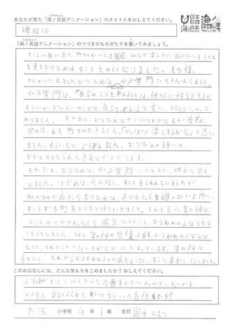 ■岩本陽夏さん(大洗町立 大洗小学校 4年生)