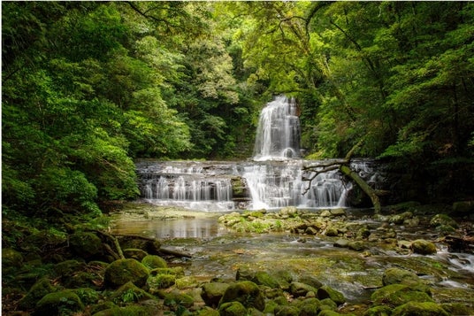 日南市の北郷エリアに位置する猪八重渓谷は、照葉樹林に覆われた自然豊かな渓谷で、NPO森林セラピーソサエティが実施している「森林セラピー基地」にも認定されています。整備された遊歩道を歩きながら、大小さまざまな滝や清流を巡ることができ、四季折々に異なる森の景観を楽しめます。渓谷内では約300種類のコケ類が確認されており、湿潤な環境が育む苔むした岩や木々の風景が特徴です。